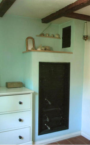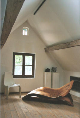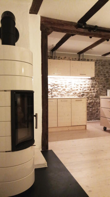 die handgeschlagenen Balken wurden in den Raum einbezogen. Auch ein Streifen