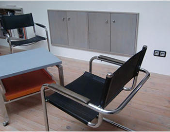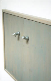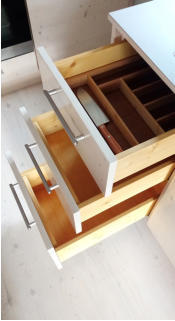 angemischte Leinöl-Lasur ist auf die silberfarbenen und organisch gerfomten Griffe abgestimmt.