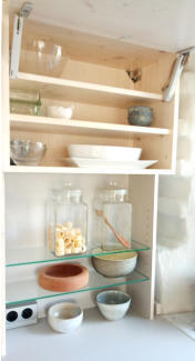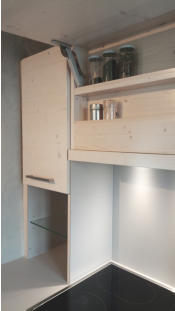 Ein ökologisch orientierter Innenausbau mit Einbaumöbel. Die Farbgebung der eigens dafür